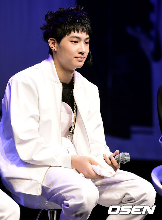 17일 오후 서울 광진구 악스코리아홀에서 열린 그룹 갓세븐의 첫 정규앨범 '아이덴티티(Identity)' 의 쇼케이스에서 갓세븐 JB가 질의응답 시간을 갖고 있다.