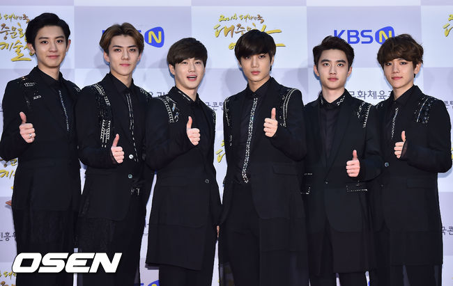 17일 오후 서울시 종로구 연건동 홍익대 대학로 아트센터 대강당에서 열린 '2014 대한민국 대중문화예술상'에서 엑소K가 포토월에서 포즈를 취하고 있다.