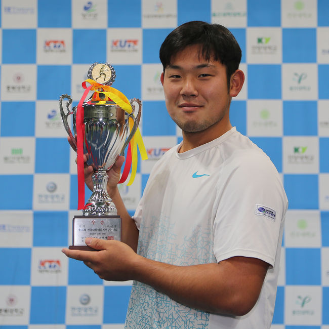 김재환은 지난 16일 강원도 양구 테니스파크 실내테니스장에서 열린 대회 남자단식 결승서 추계대회 우승자인 같은 학교 시드2번 이재문에게 기권승을 거두고 대학 진학 후 첫 개인전 정상에 올랐다.