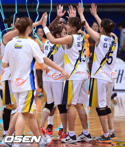 경기종료 후 신한은행 선수들이 하이파이브를 하고 있다. / soul1014@osen.co.kr