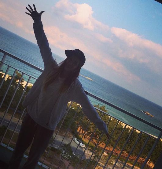 공개된 사진 속 NS윤지는 푸른 바닷가가 펼쳐진 테라스에 서서 팔을 넓게 벌리고 신난 듯 함박웃음을 짓고 있는 모습이다. 특히 그는 모자와 추리닝의 편안한 옷차림에도 남다른 비율을 뽐내고 있어 보는 이들의 시선을 사로잡고 있다.