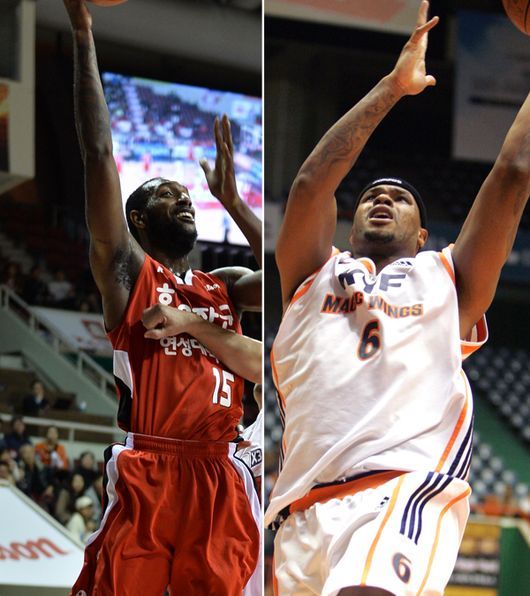 CJ 레슬리(좌)와 애런 맥기(우) / KBL 제공.