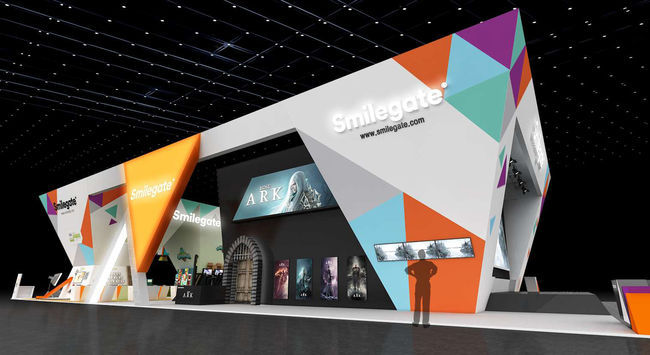 스마일게이트는 이번 지스타에 총 80부스의 규모로 첫 B2C관에 참가한다. 스마일게이트는 기본 구조물을 프랙탈 삼각형으로 제작해 기업 아이덴티티를 표현했다고 설명했다.