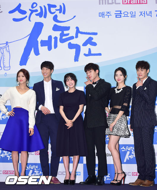 18일 오후 서울 여의도 IFC몰 여의도CGV에서 진행된 드라마 '스웨덴 세탁소'(연출 정환석) 제작발표회에서 출연배우들이 포즈를 취하고 있다.