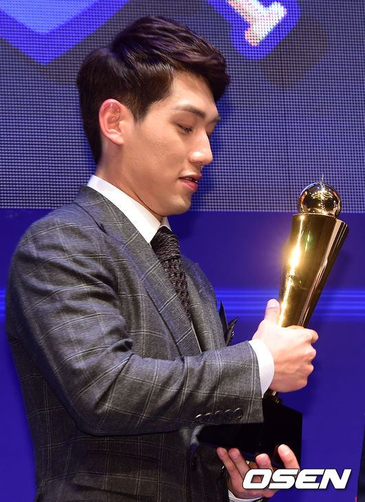 서건창이 MVP 트로피를 바라보고 있다./jpnews@osen.co.kr