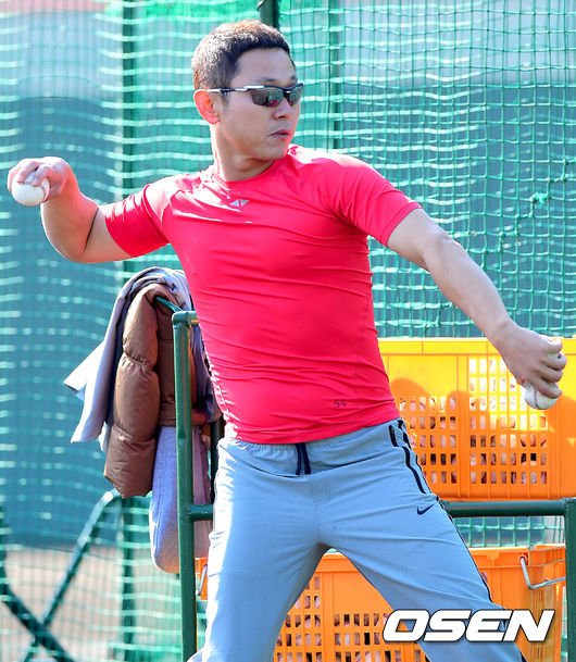 SK 박경완 육성총괄이 배팅볼을 던지고 있다.