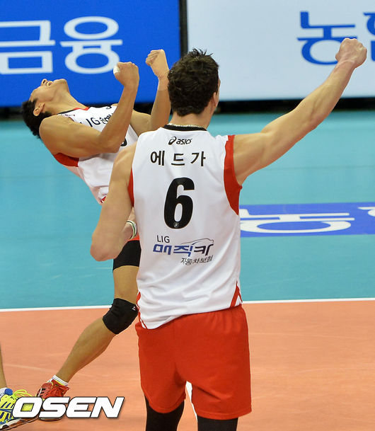 LIG는 에드가가 27득점 김요한이 19득점을 기록하며 LIG를 승리로 이끌었다.