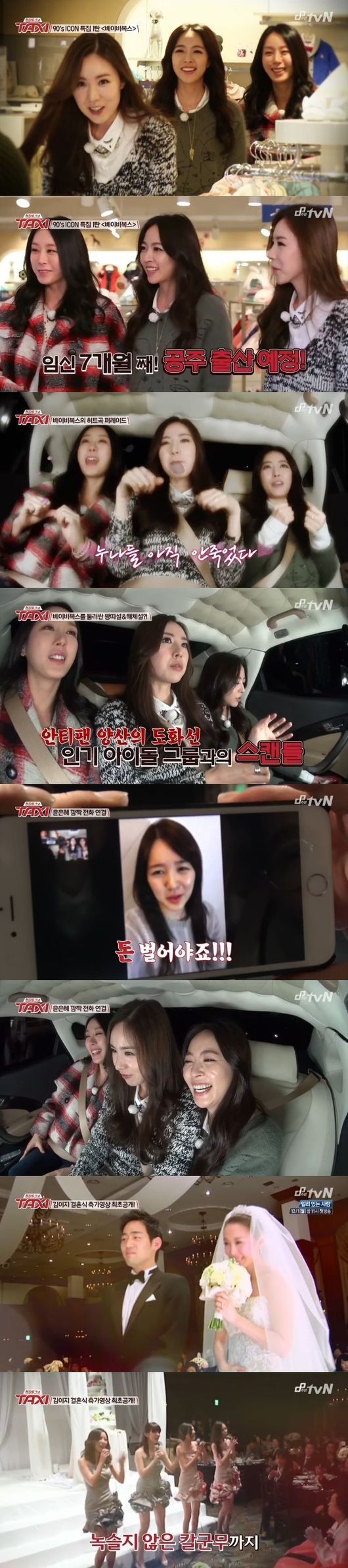 19일 오전 방송된 tvN 예능프로그램 '현장토크쇼 택시'에서는 베이비복스의 세 멤버 김이지, 간미연, 심은진이 출연해 자신들의 근황을 밝혔다. 또 다른 멤버인 이희진은 드라마 촬영, 윤은혜는 부산 스케쥴로 인해 어쩔 수 없이 불참한 상황.