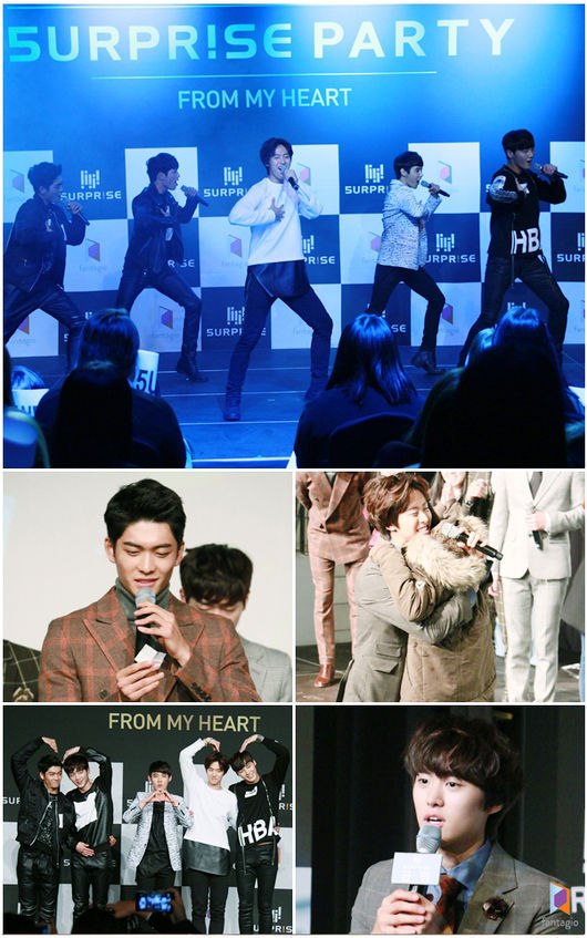 이날 팬미팅에서 서프라이즈는 첫 싱글 타이틀곡 ‘From my heart’와 수록곡 ‘Jump’, 윤건의 ‘별’ 등의 다채로운 무대뿐만 아니라 팬카페를 통해 미리 받은 질문에 답변하는 Q&A 토크 시간을 가지며 약 1시간 30여 분 동안 팬들과 뜻깊은 시간을 보냈다.