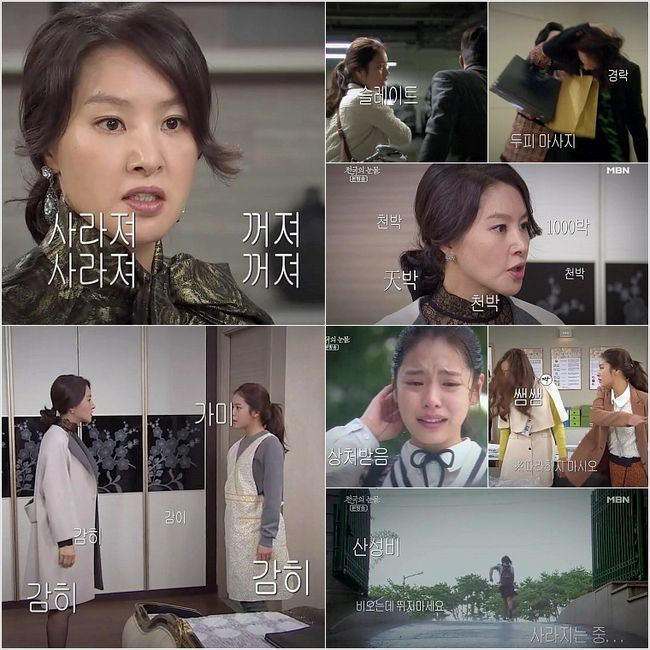 이어 박지영이 홍아름을 대할 때 가장 많이 등장했던 ‘천박’이란 단어를 희화화시킨 장면들도 배치돼 웃음을 자아내고 있다. ‘1000박’ ‘天박’ 등 ‘천박’의 발음과 유사한 각종 단어들이 등장하는 것. 또한 격분한 박지영이 홍아름을 향해 쏟아내는 ‘감히’라는 대사를 ‘감이’ ‘가미’라는 자막으로 대체, ‘깨알재미’를 주고 있다.
