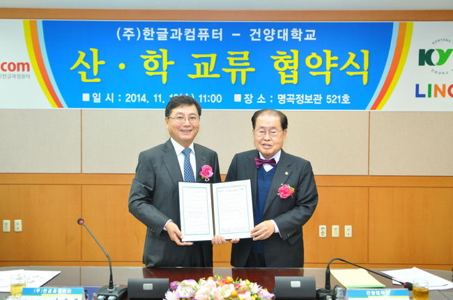 한글과컴퓨터가 건양대학교와 산학협력을 맺었다.