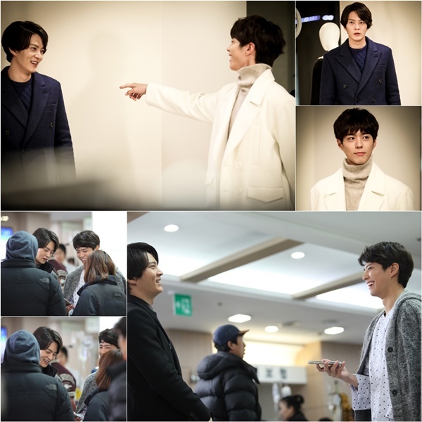 19일 공개된 사진 속에는 자체 발광 훈남 콤비 주원과 박보검의 환한 미소가 담겼다. 주원과 박보검은 촬영 전 나란히 서서 대사를 맞춰보며 환하게 웃음 짓고 있다. 또 두 사람은 감정을 잡고 촬영에 임하는 도중에도 서로를 향해 웃음을 터트리며 촬영 현장을 화기애애하게 만들고 있다.