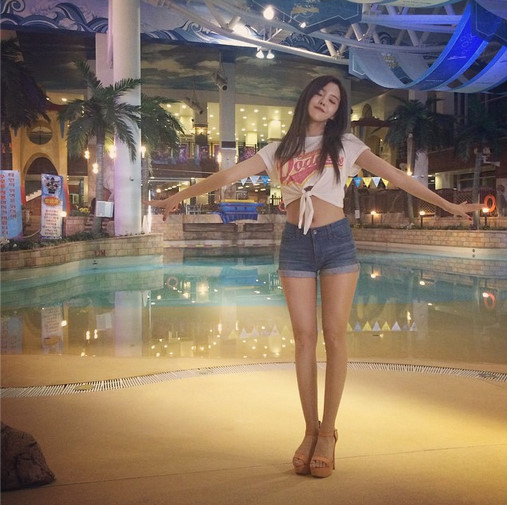 공개된 사진 속 효민은 실내 워터파크에서 팔을 벌린 채 행복한 듯 미소 짓고 있는 모습이다. 특히 그는 핫팬츠와 배꼽티로 한 손에 잡힐 듯한 개미허리와 쭉 뻗은 각선미를 뽐내고 있어 보는 이들의 시선을 사로잡고 있다.