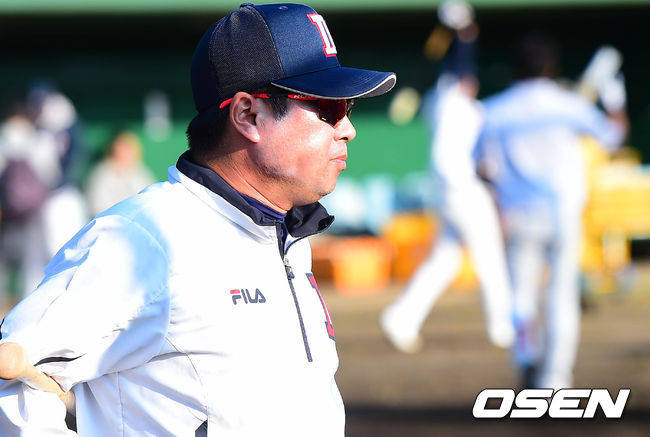 김태형 신임 감독이 선수들의 훈련을 지켜보고 있다.
