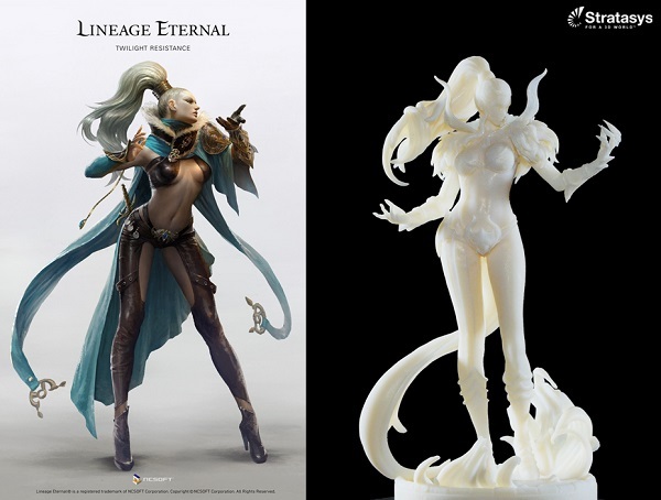 리니지 이터널은 리니지의 세계관을 잇는 세 번째 시리즈이다. 엔씨소프트와 스트라타시스는 이번 제휴를 통해 리니지 이터널의 캐릭터를 3D 프린터로 출력하여 총 5종의 아트 토이를 제작했다. 스트라타시스만이 보유하고 있는 폴리젯(PolyJetTM) 기술을 사용하여 옷자락과 손톱, 짧은 머리카락 등 캐릭터의 세부적인 특징을 섬세하게 표현했다.