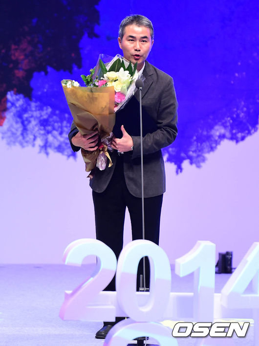 19일 오후 부산 영화의전당에서 열린 2014 대한민국 게임대상에서 사회공헌우수기업상을 수상한 위메이드 엔터테인먼트 장현국 대표가 수상 소감을 말하고 있다.