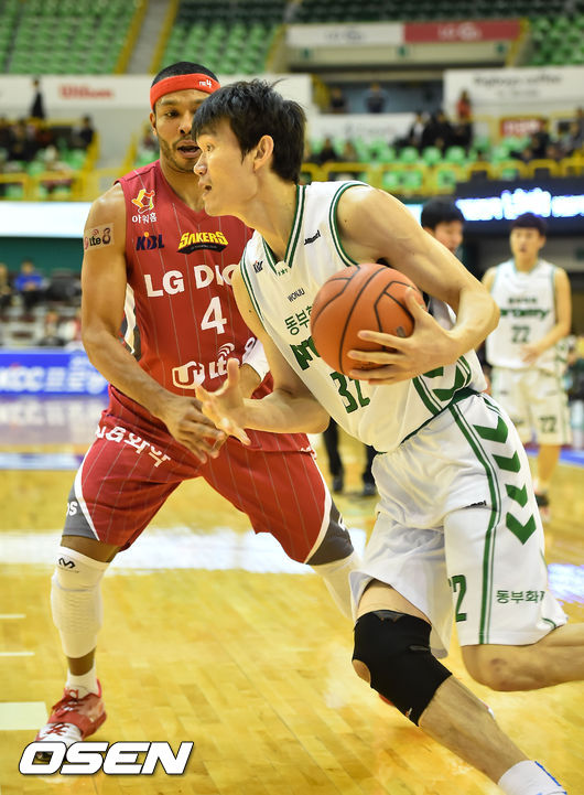 19일 오후 경상남도 창원시 의창구 창원실내체육관에서 열린 '2014-2015 KCC 프로농구' 창원 LG와 원주 동부와의 경기, 1쿼터 동부 김주성이 LG 문태종을 돌파하고 있다.