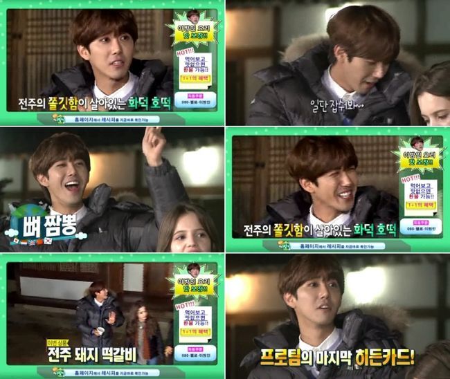 광희는 최근 진행된 '헬로 이방인' 촬영에서 이방인들과 함께 전주로 떠나는 모습이 담겼다. 이날 광희는 ‘전주 맛 찾기’ 게임의 승리를 위해 “여기만 판다는 거”라고 운을 뗀 뒤,”화덕에 구우면 바삭바삭 해지는데 여기는 쫄깃쫄깃 하다”, “안 믿어져? 잡숴봐” 라는 멘트로 모든 출연자들의 구미를 당겼다.