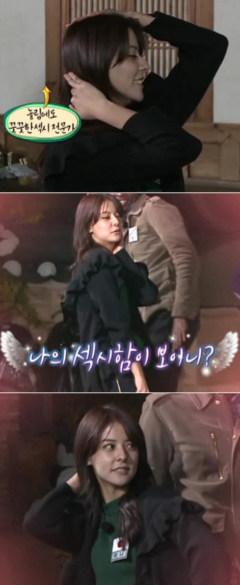 후지이 미나는 20일 전파를 탈 예정인 MBC ‘헬로! 이방인’ 내 게임 진행 도중 ‘섹시한 포즈 취하기’ 라는 미션을 위해 ‘섹시 포즈 3종 세트’를 선보였다.
