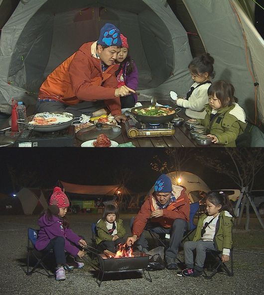 평소 딸 바보로 소문난 정웅인은 아이들을 위해 즉석 해물 요리를 선보이며 자상한 면모를 뽐내는가 하면 후식으로 군고구마를 구워먹고, 폭죽놀이까지 즐기며 포근하고도 오붓한 시간을 보내며 캠핑의 참맛을 즐겼다는 후문.