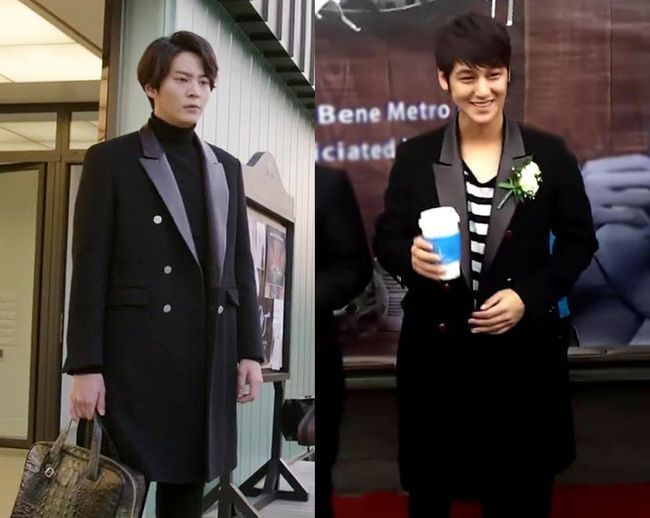 주원과 김범이 선택한 블랙 코트는 클래식한 더블코트에 레더 라펠이 돋보이는 디자인. 도시적이면서도 세련된 느낌이 물씬 풍긴다.