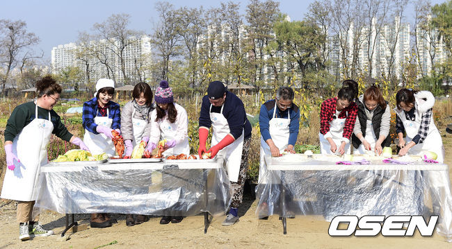 20일 오전 서울 용산구 이촌동 노들섬에서 진행된 SBS '잘 먹고 잘 사는 법, 식사하셨어요?-김장특집' 현장공개에서 출연진들이 김장을 하고 있다.