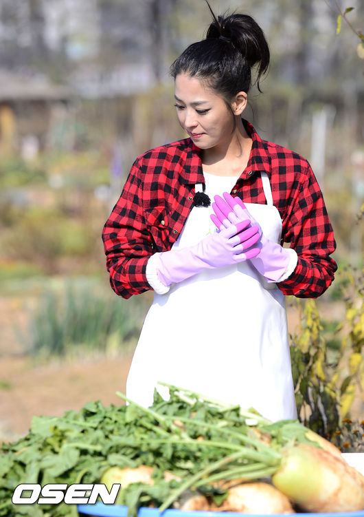 20일 오전 서울 용산구 이촌동 노들섬에서 진행된 SBS '잘 먹고 잘 사는 법, 식사하셨어요?-김장특집' 현장공개에서 배우 한고은이 김장을 준비하고 있다.
