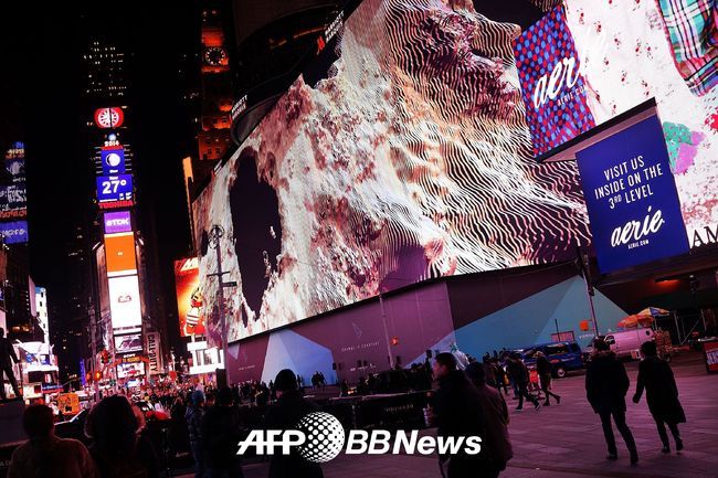 미국 뉴욕 맨해튼의 중심가인 타임스 스퀘어에 길이가 축구장 가로 폭에 가까운 옥외광고용 전광판이 들어섰다.