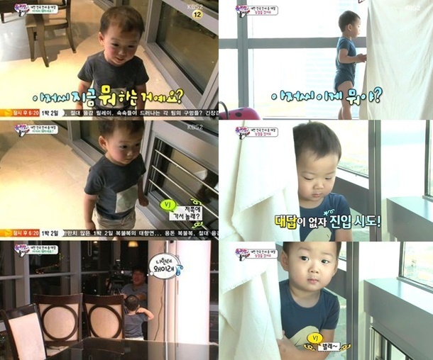 특히 최근 방송에서는 미처 텐트를 치지 못한 제작진에게 다가온 송일국 아들 민국이가 “아저씨 거기서 뭐하세요?”라고 말을 걸고, 창틀에 놓인 죽은 파리를 보고 “아저씨 이게 뭐야?”라고 끊임없이 말을 걸며 대답을 요구해 VJ가 당황하는 모습으로 시선을 끌었다. VJ는 작은 목소리로 ‘벌레’라고 답을 해줬고, 민국이는 그제야 만족한 듯 돌아가는 모습을 보였다.