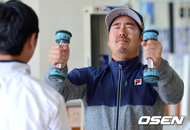 두산 유희관이 웨이트 훈련을 진행하고 있다.
