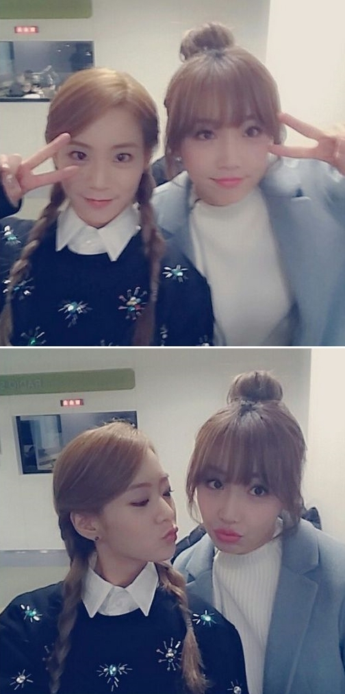 공개된 사진 속에는 입술을 삐죽 내민 채 깜찍한 표정을 짓고 있는 두 사람의 모습이 담겨있다. 특히 이유리는 일명 ‘똥머리’ 헤어스타일로 동안미모를 과시해 눈길을 끌었다.