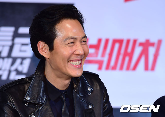 20일 오후 서울 건대 롯데시네마에서 열린 영화 '빅매치' 언론시사회에서 이정재가 미소짓고 있다.