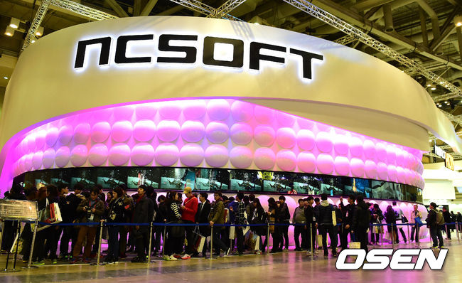 20일 오후 부산 벡스코(BEXCO)에서 '지스타 2014'가 열린 가운데, NC소프트 부스에 관람객들이 줄을 서 있다.
