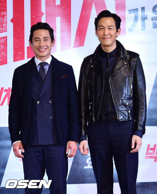 20일 오후 서울 건대 롯데시네마에서 열린 영화 '빅매치' 언론시사회에서 신하균과 이정재가 포토타임을 하고 있다.