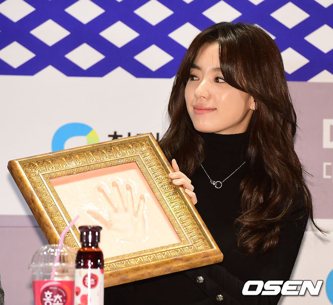 배우 한효주가 핸드프린팅을 선보이고 있다.