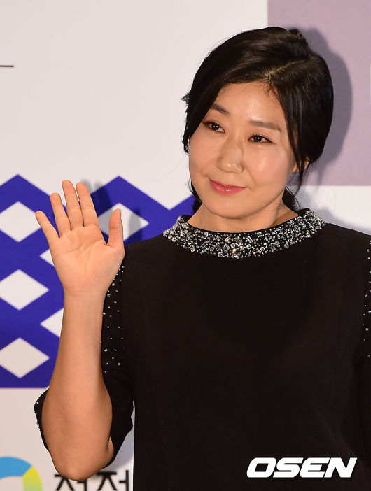 배우 라미란이 무대에 올라 인사를 하고 있다.