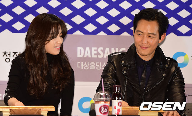 배우 한효주가 이정재의 핸드프린팅 모습을 바라보고 있다.