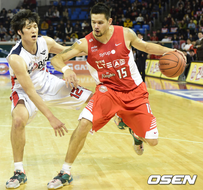 20일 오후 서울 잠실학생체육관에서 열린 '2014-2015 KCC 프로농구 2라운드' 서울 SK나이츠와 울산 모비스 피버스의 경기, 1쿼터 SK 김민수가 모비스 함지훈의 수비를 돌파하고 있다.
