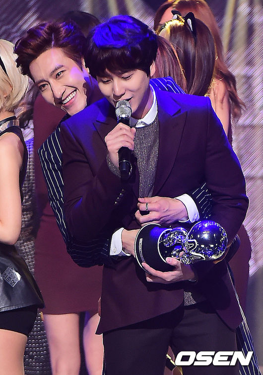 20일 오후 서울 상암동 CJ E & M 센터에서 열린 Mnet '엠카운트다운'(이하 엠카) 생방송에서 조미가 1위를 차지한 규현의 앵콜 무대에서 기뻐하고 있다.