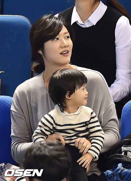 군입대전 마지막 경기를 한 삼성화재 박철우의 아내 신해인이 전광판에 박철우의 영상이 흘러나오자 바라보며 미소짓고 있다. / rumi@osen.co.kr