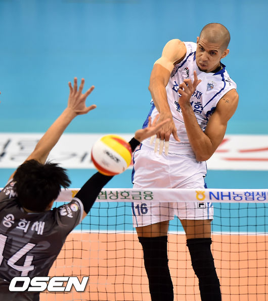삼성화재는 20일 오후 대전충무체육관에서 열린 NH농협 2014-2015 프로배구 V리그 남자부 2라운드 홈경기서 OK저축은행을 세트스코어 3-0(28-26, 25-23, 25-23)으로 완파했다.