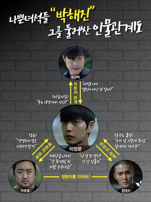 케이블채널 OCN 드라마 ‘나쁜 녀석들’ 속 모든 사건의 중심이 된 박해진과 그를 둘러싼 인물들 사이의 미묘한 관계가 공개됐다.
