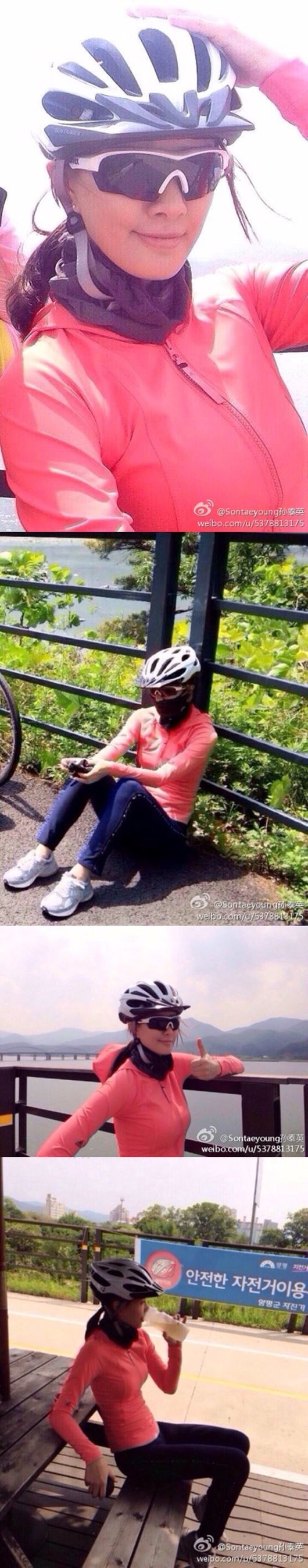 손태영은 자신의 공식 웨이보에 “지난 여름의 추억 양수리 라이딩 멤버는”이라는 글과 함께 여러장의 사진을 공개했다.