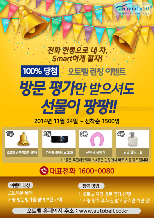 현대글로비스 오토벨이 론칭 기념 이벤트를 진행한다. 현대글로비스의 내 차 팔기 전문 브랜드 ‘오토벨(Autobell)’은 24일, 론칭 기념 이벤트를 실시한다고 밝혔다.
