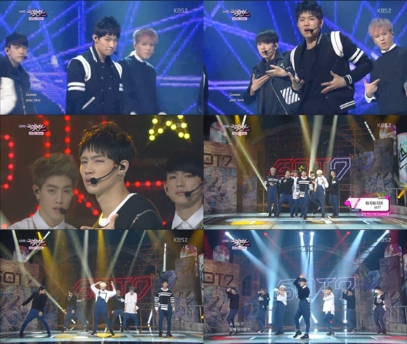 갓세븐은 21일 오후 방송된 KBS 2TV '뮤직뱅크'에 출연해 신곡 '하지하지마'의 무대를 공개했다.