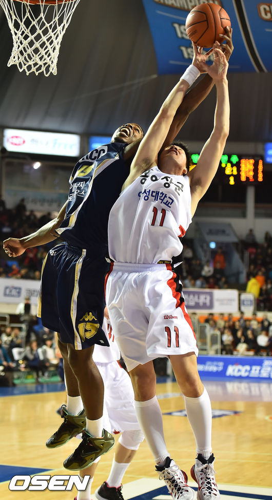 19일 오후 전라북도 전주시 전주실내체육관에서 열린 '2014-2015 KCC 프로농구' 전주 KCC 이지스와 안양 KGC 인삼공사의 경기, 2쿼터 KCC 심스와 KGC 양희종이 치열한 리바운드 대결을 펼치고 있다.
