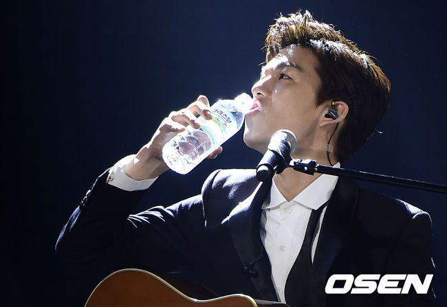 톱 2 곽진언이 무대 시작전 물을 마시고 있다.