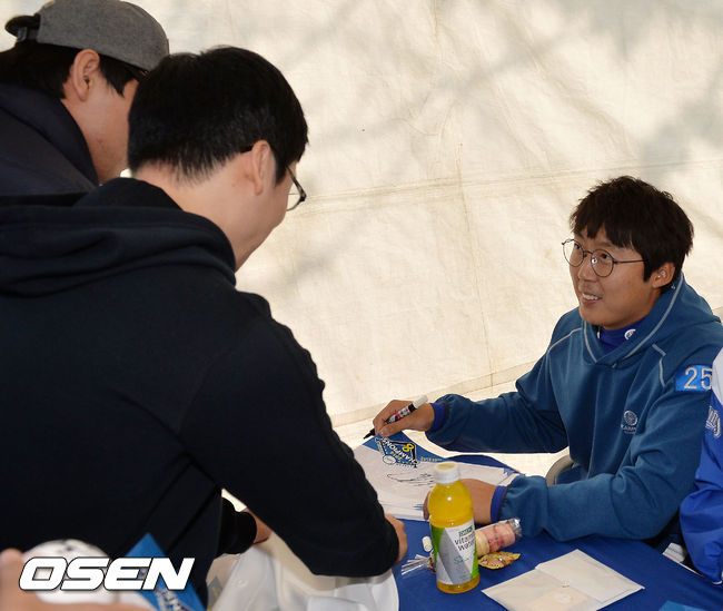 22일 오후 대구 북구 산격동 대구실내체육관에서 열린 삼성 라이온즈 '프로야구 최초 통합 4연패 기념 2014 팬 페스티벌', 배영수가 팬들에게 사인을 해주고 있다.