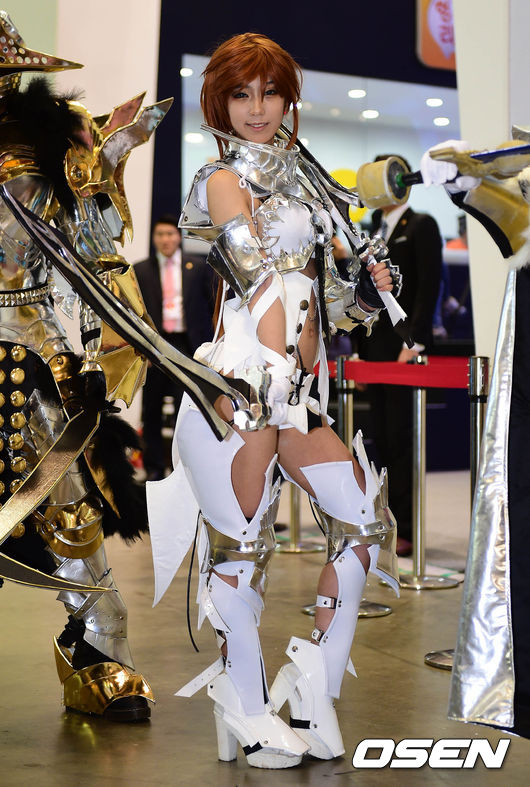 22일 오후 부산 벡스코(BEXCO)에서 열린 '지스타 2014' 에서 게임 캐릭터 복장을 한 모델들이 포즈를 취하고 있다.
