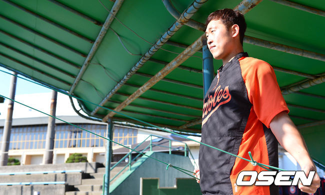 KIA 마무리훈련에 합류한 미국 메이저리그 볼티모어 윤석민이 튜빙훈련을 진행하고 있다.